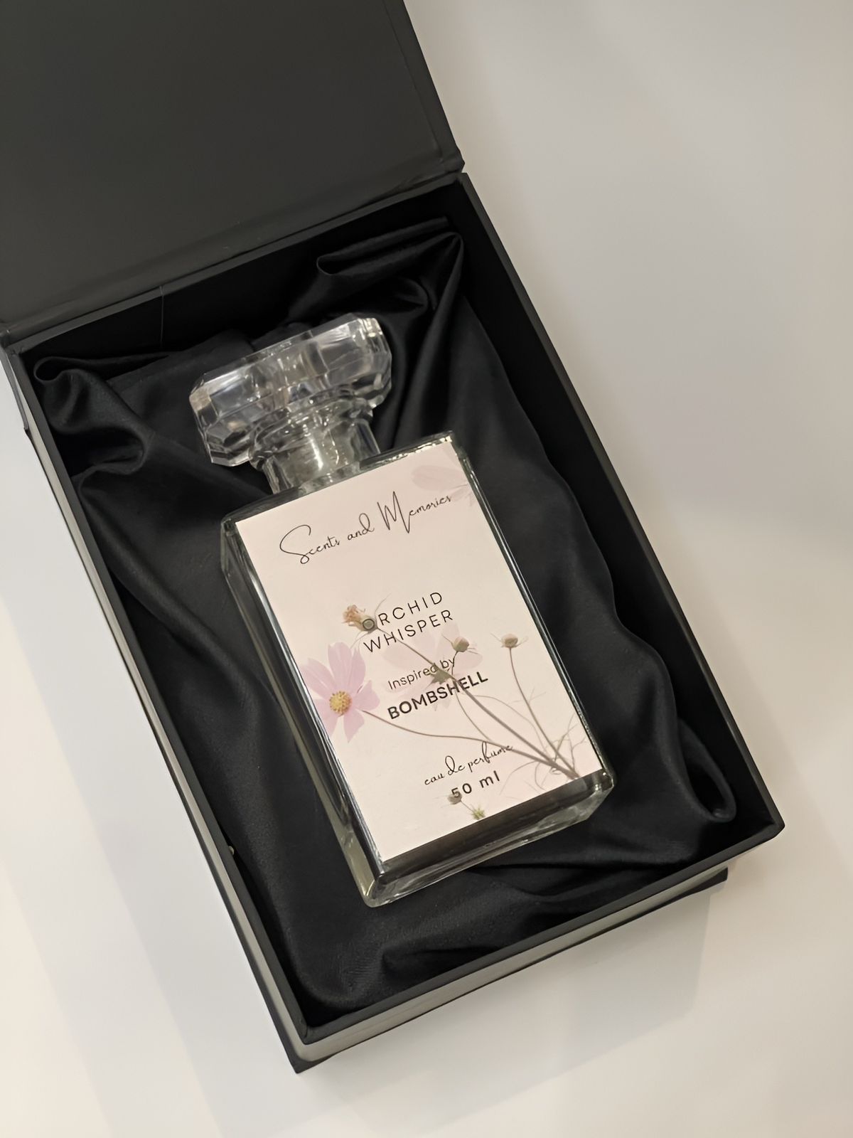 Orchid Whisper by Scents & Memories is a celebration of sparkling confidence and effortless charm. Inspired by the modern woman who lights up every room, this fragrance is playful, glamorous, and undeniably magnetic.